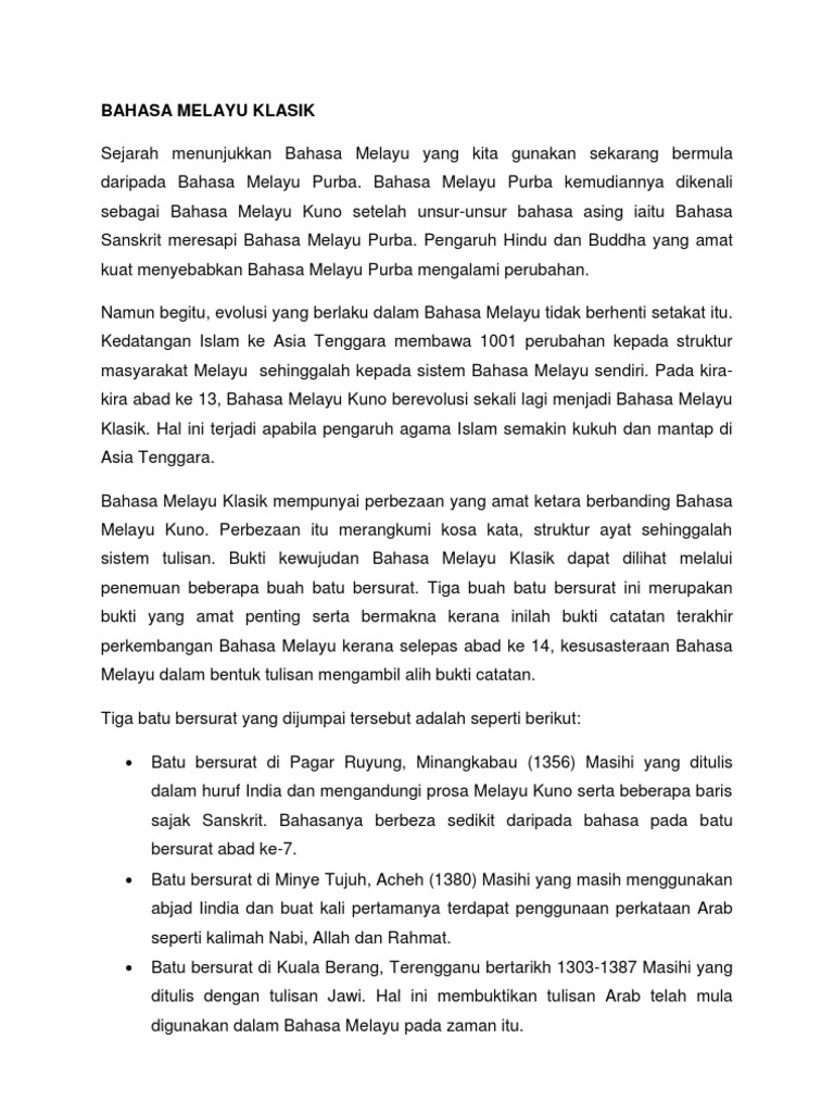 Check 12 flipbooks from ANAWSUZIE19. View BAHASA_MELAYU_KLASIKpdf from A EN MISC at IPG Kampus Keningau. BAHASA MELAYU KLASIK Pengaruh Islam menjadi semakin kuat sehingga bahasa Melayu.